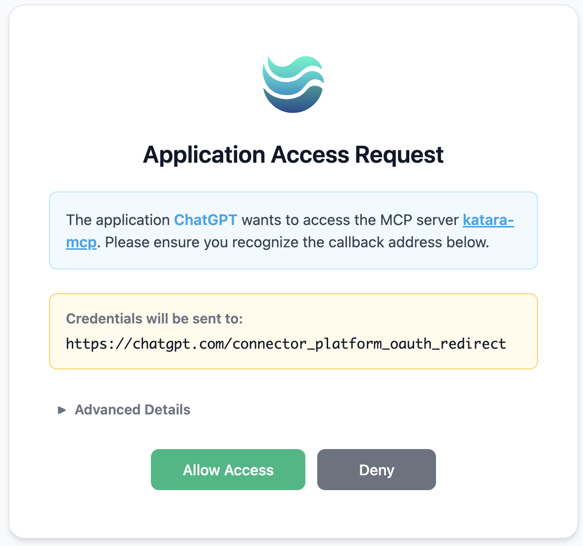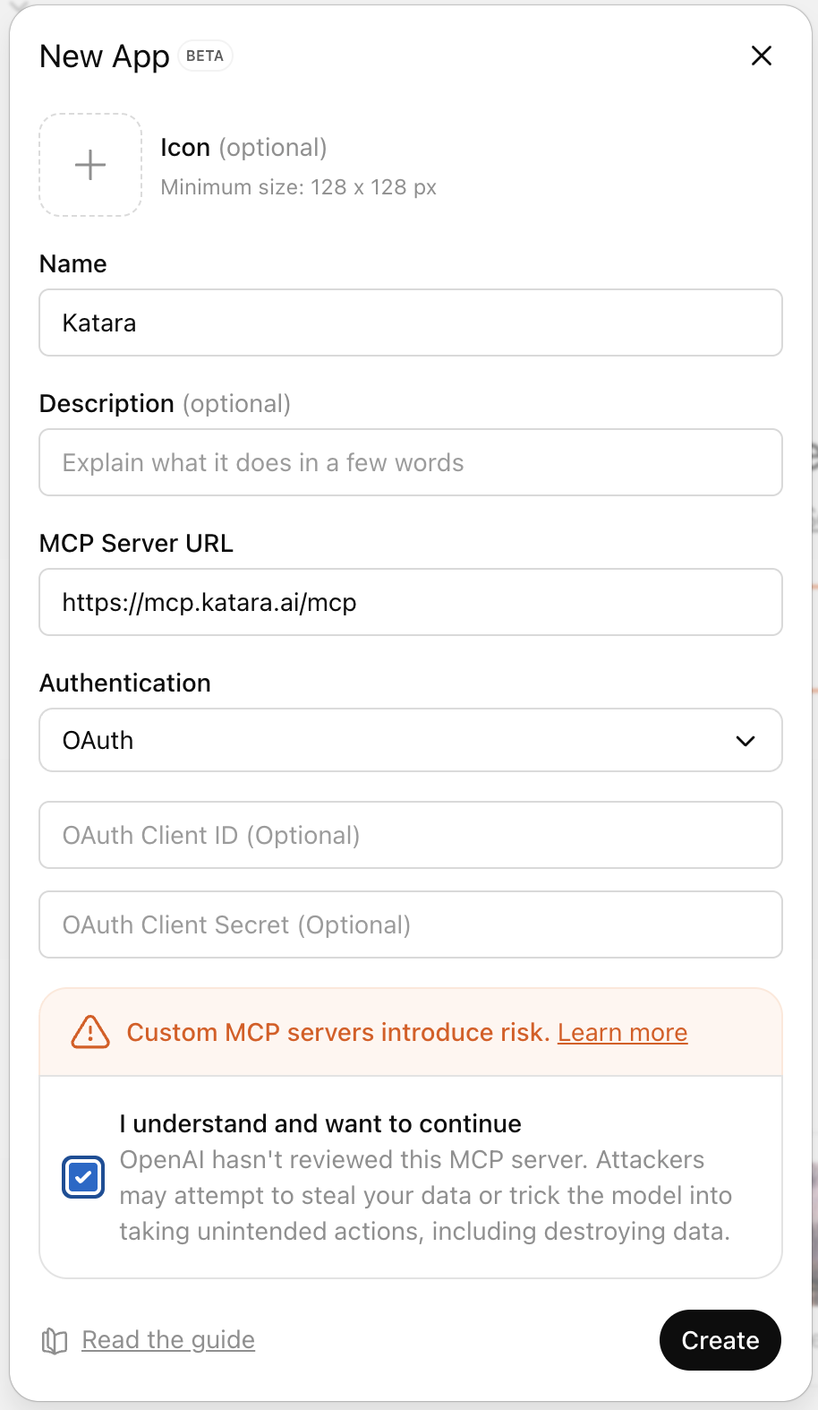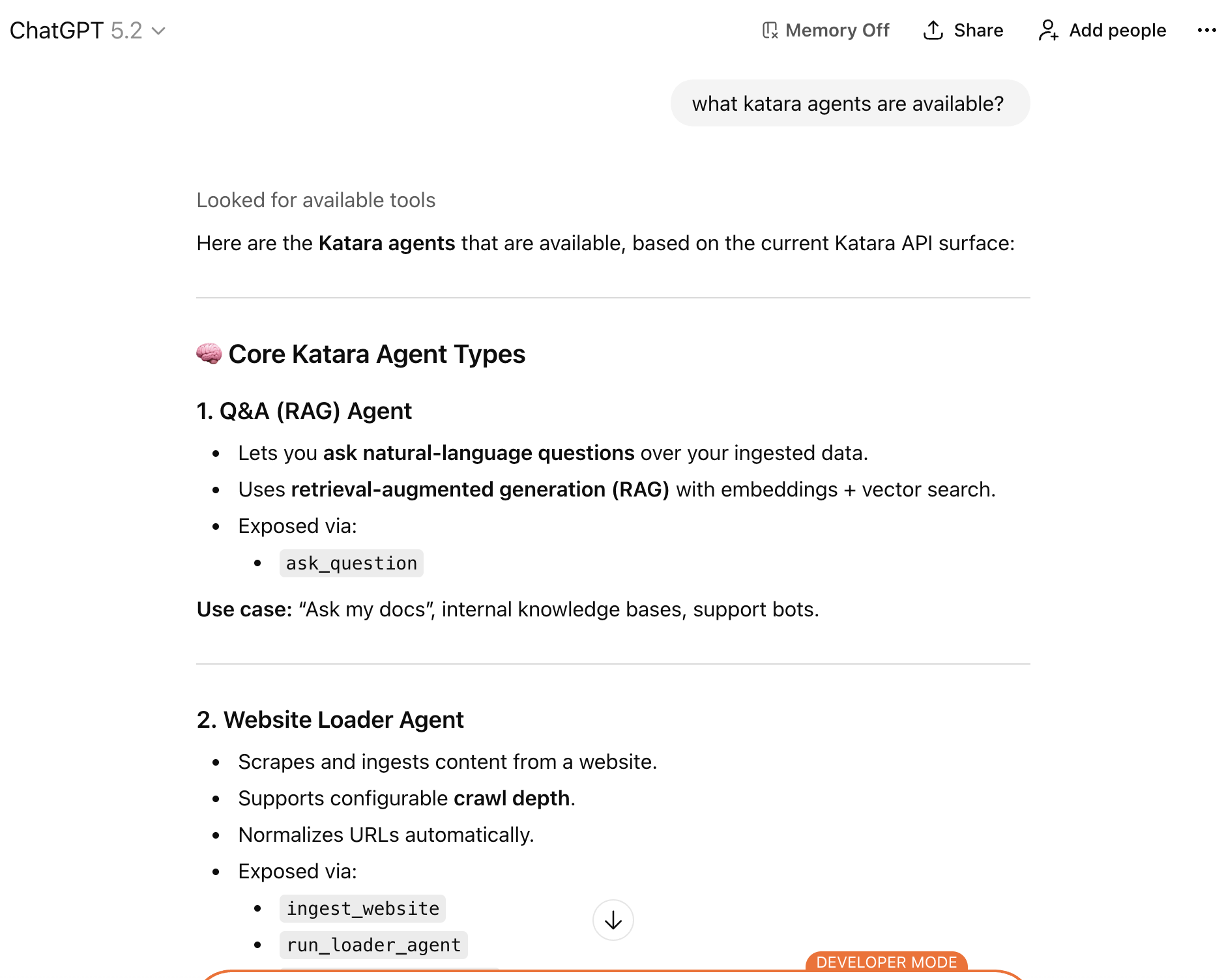 8. Your MCP Server will be enabled in ChatGPT (you can now use Katara MCP tool in ChatGPT desktop)